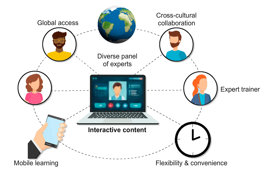 Digital learning provides students with access to a diverse panel of experts and fosters interactions across cultural and professional contexts. Trainees can learn from anywhere with an internet connection and progress at their own pace.